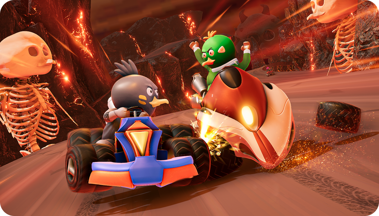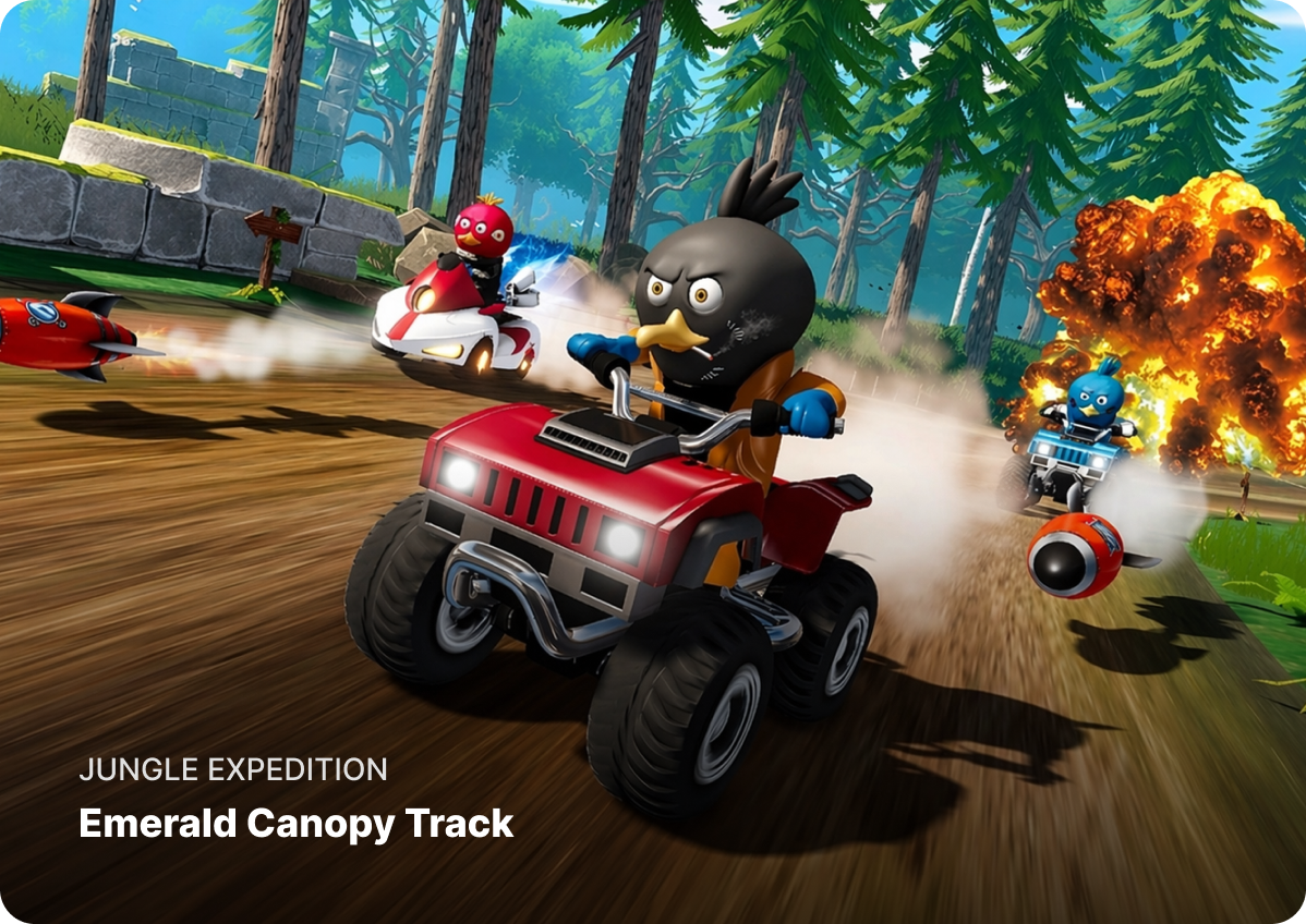 From desert canyons to tropical forests, each track features dynamic hazards and shortcuts.
